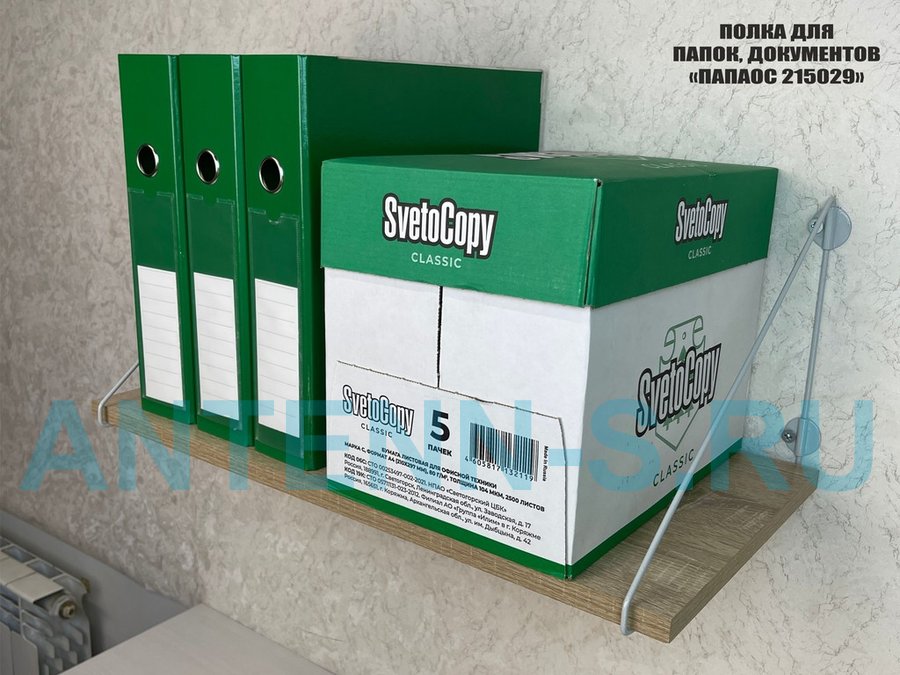 - Полка надежно крепится к стене при помощи анкеров или шурупов с дюбелями, на ней можно разместить папки, документы,бумагу и многое другое