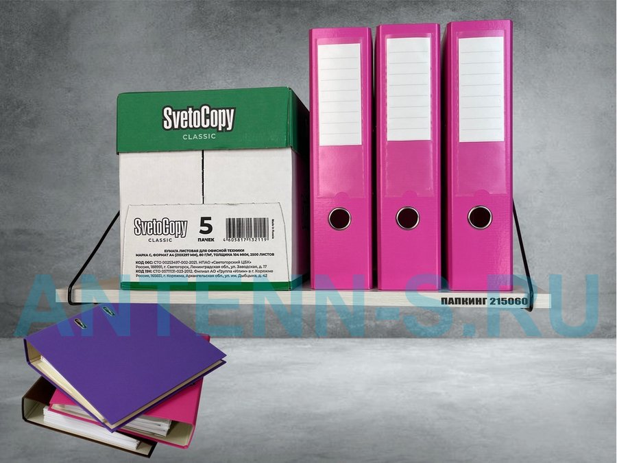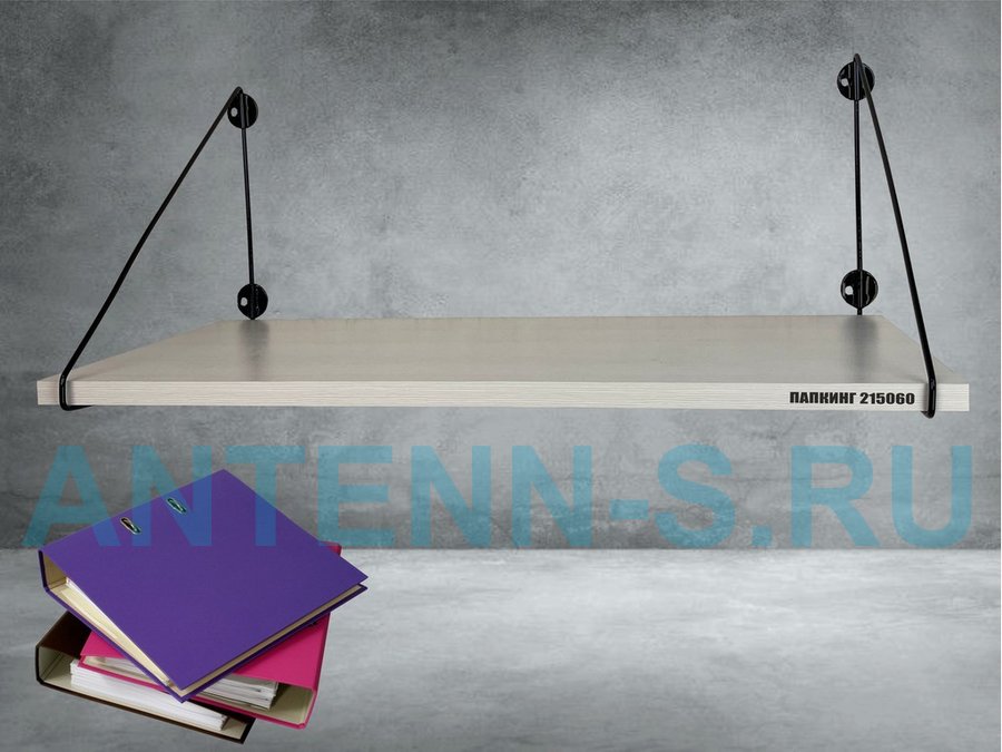 Полка для папок и документов "ПАПКИНГ 215060" высота 26 см размер 60х30 см черный и сосна выбеленная