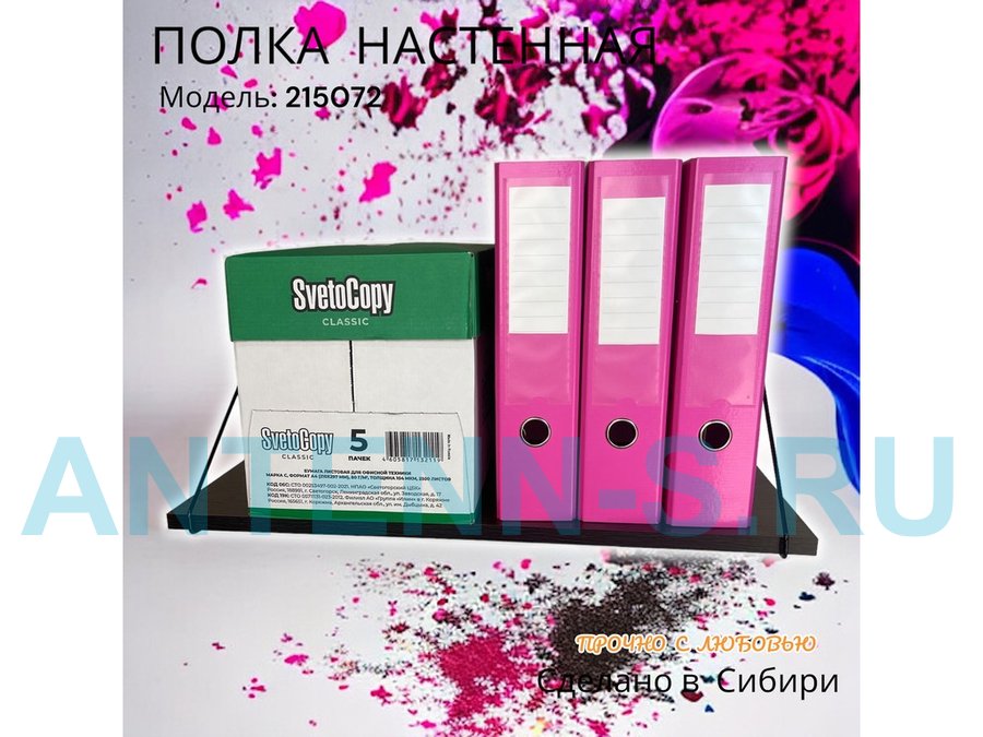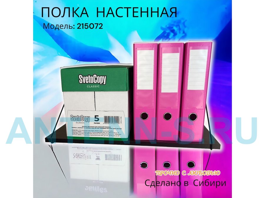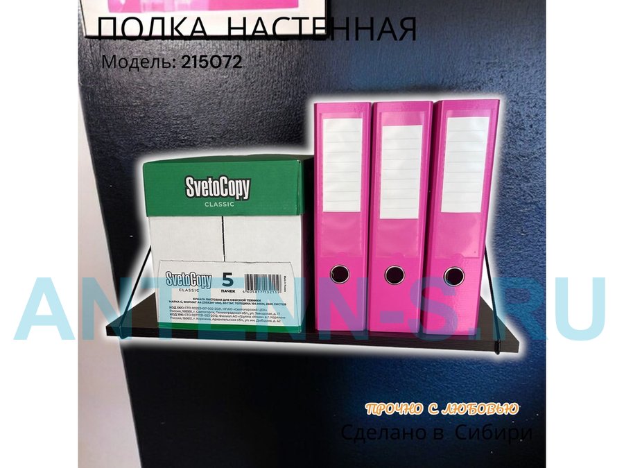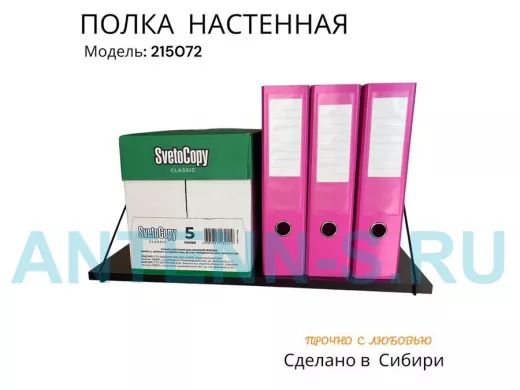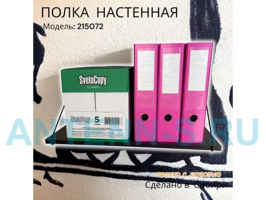 - Полка надежно крепится к стене при помощи анкеров или шурупов с дюбелями, на ней можно разместить папки, документы