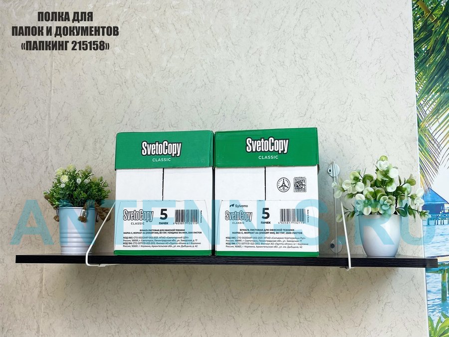 - Полка надежно крепится к стене при помощи анкеров или шурупов с дюбелями, на ней можно разместить папки, документы