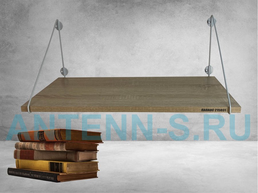 Полка для книг "КНИГОКРЕП 215031" высота 26 см размер 60х30 см серый и дуб сонома