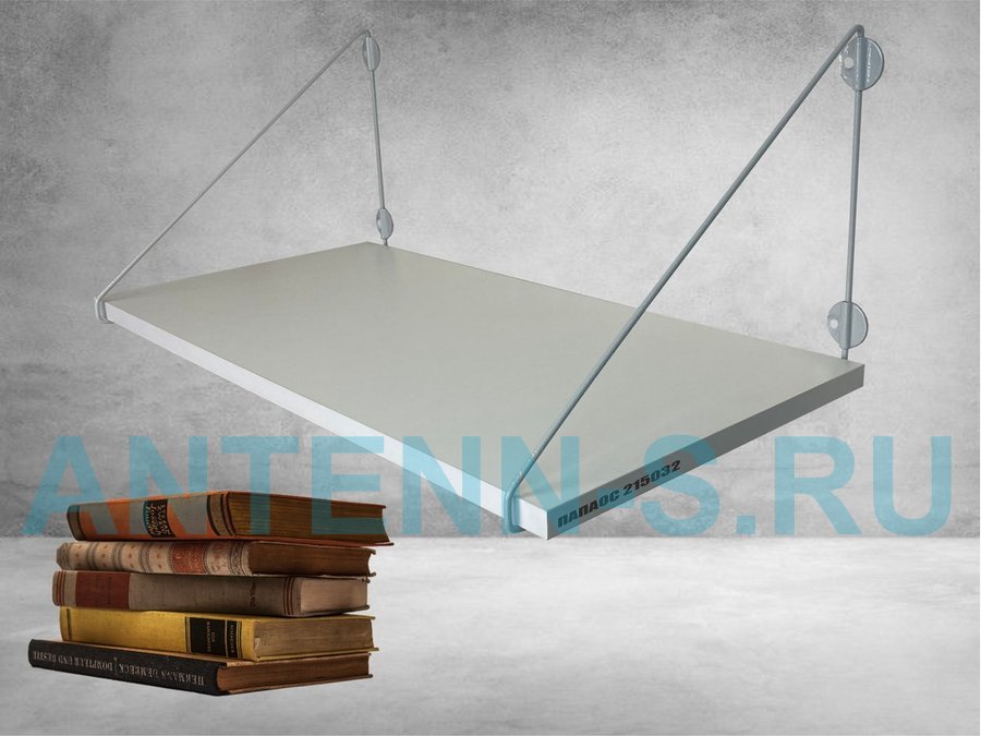 Полка для книг "КНИГОКРЕП 215032" высота 26 см размер 60х30 см серый и белый шагрень
