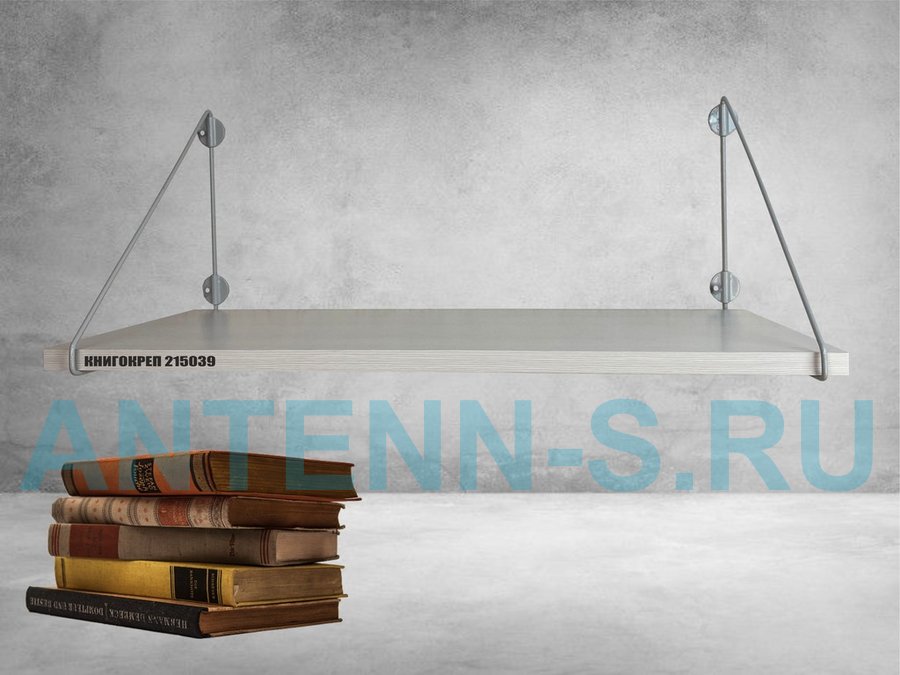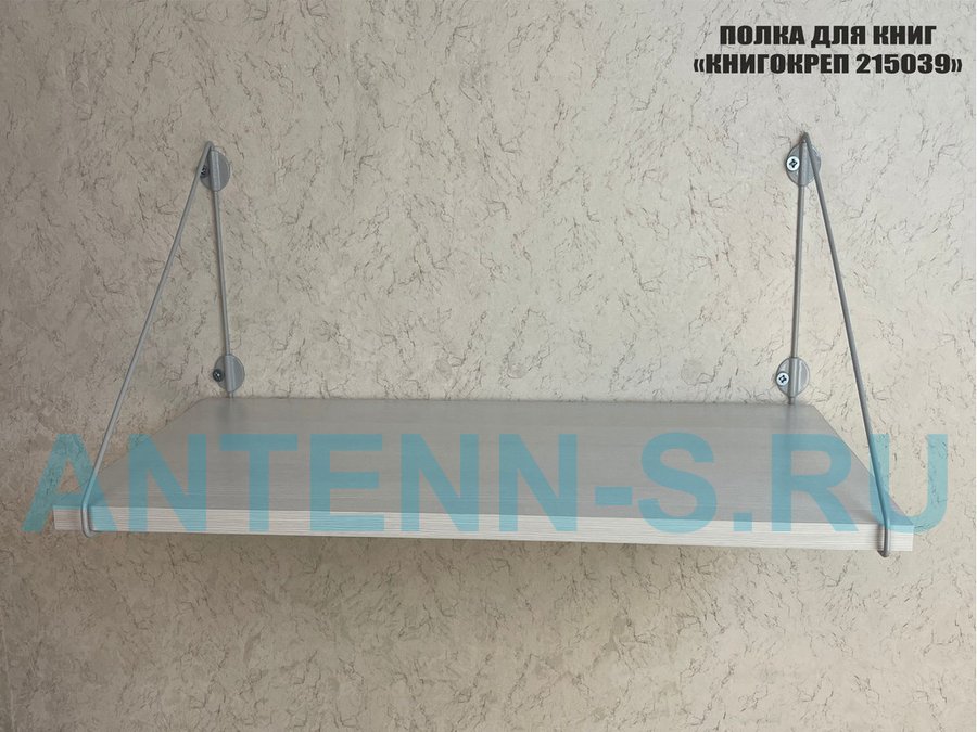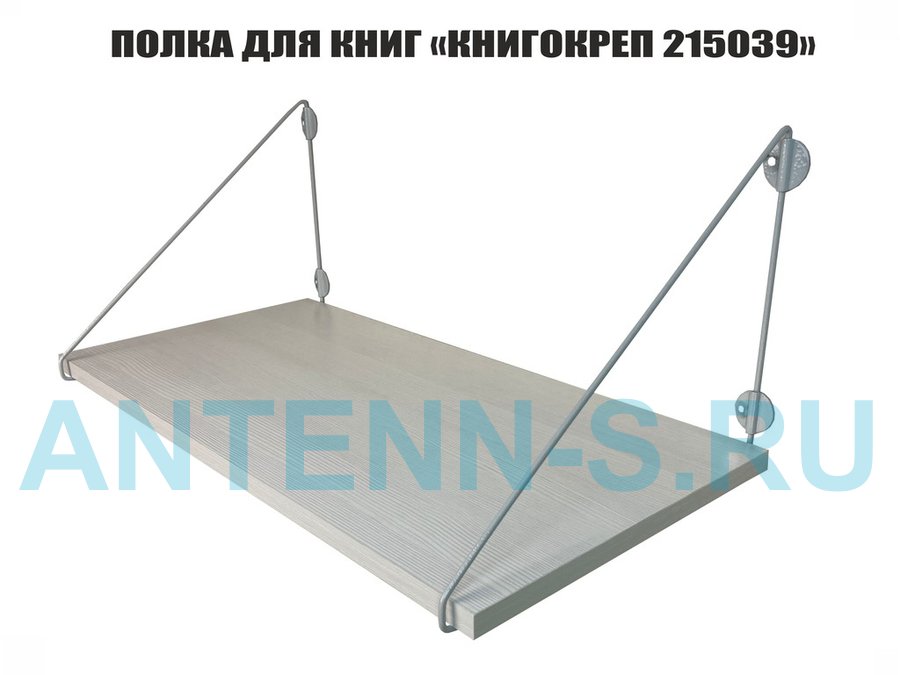 Полка для книг "КНИГОКРЕП 215039" высота 26 см размер 60х30 см серый и сосна выбеленная