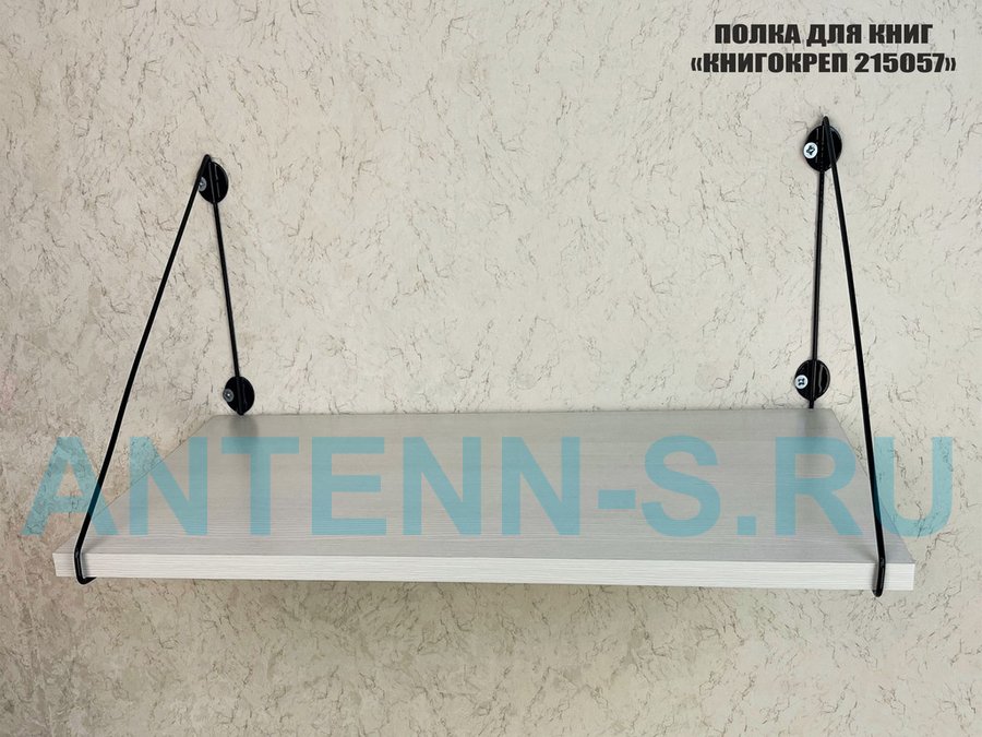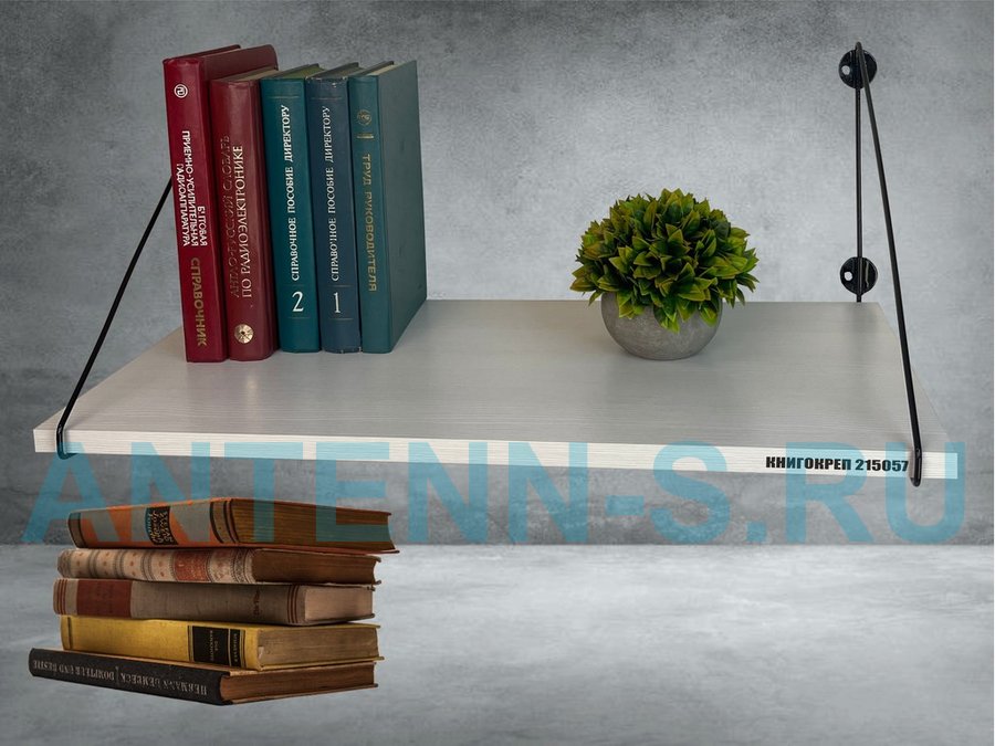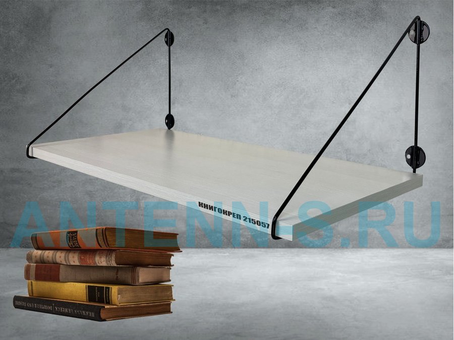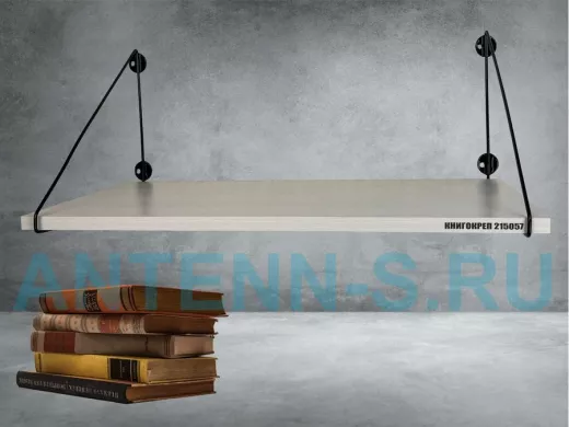 Полка для книг "КНИГОКРЕП 215057" высота 26 см размер 60х30 см черный и сосна выбеленная