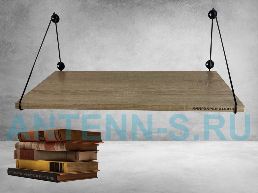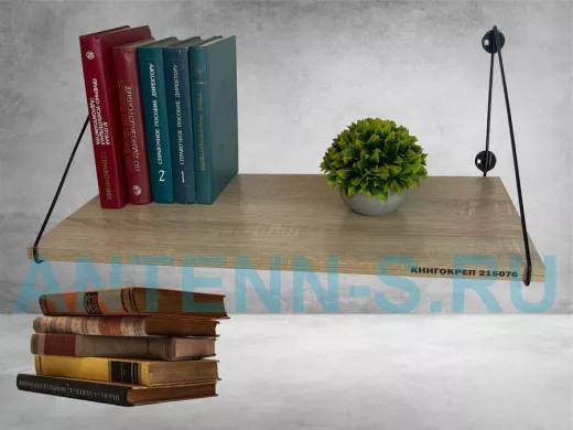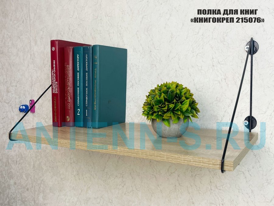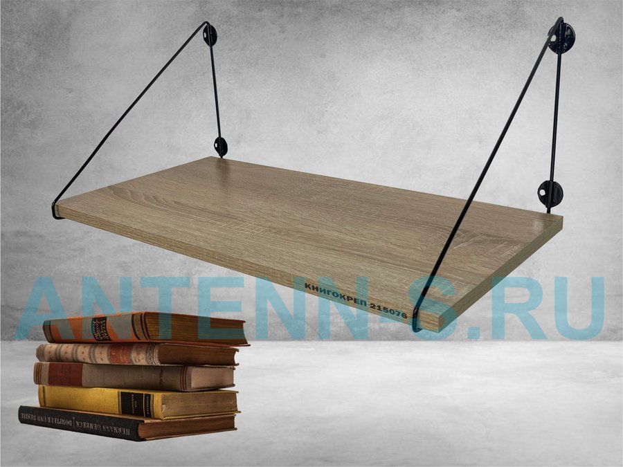 Полка для книг "КНИГОКРЕП 215076" высота 26 см размер 60х30 см черный и дуб сонома
