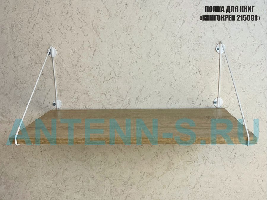 Полка для книг "КНИГОКРЕП 215091" высота 26 см размер 60х30 см белый и дуб сонома