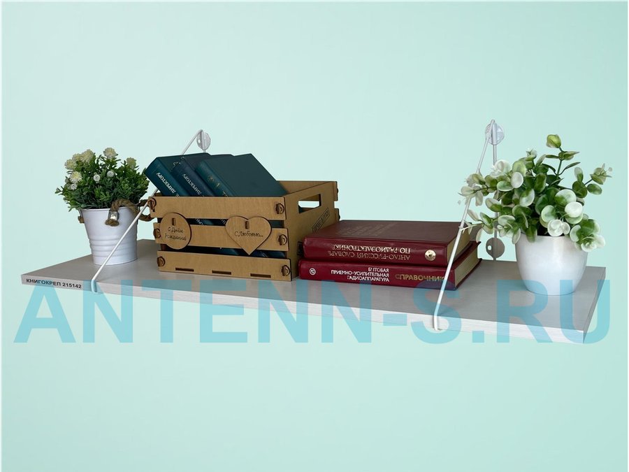 Полка для книг "КНИГОКРЕП 215142" высота 26 см размер 90х30 см белый и сосна выбеленная