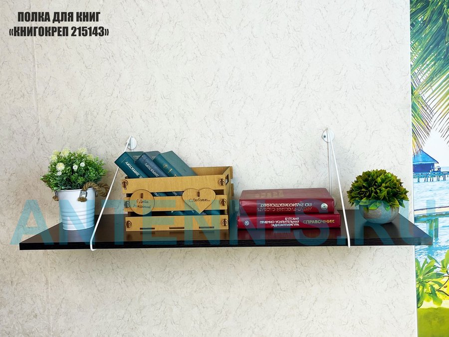 - Полка надежно крепится к стене при помощи анкеров или шурупов с дюбелями, на ней можно разместить книги, журналы