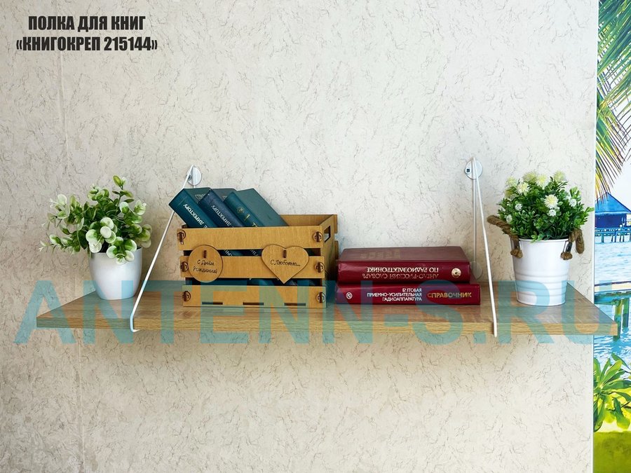 Полка для книг "КНИГОКРЕП 215144" высота 26 см размер 90х30 см белый и дуб сонома