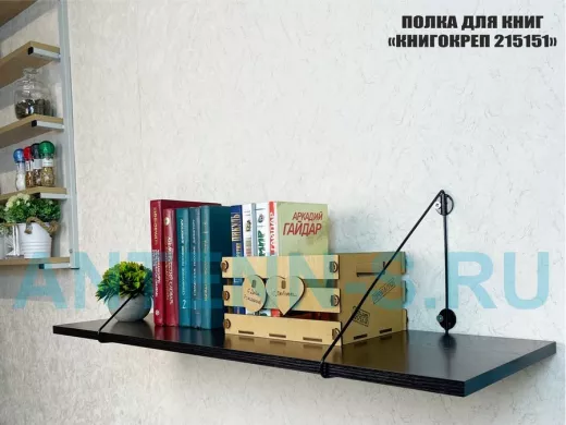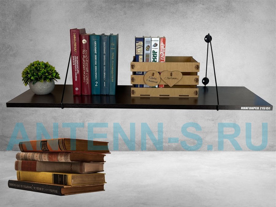 Полка для книг "КНИГОКРЕП 215151" высота 26 см размер 90х30 см черный и венге