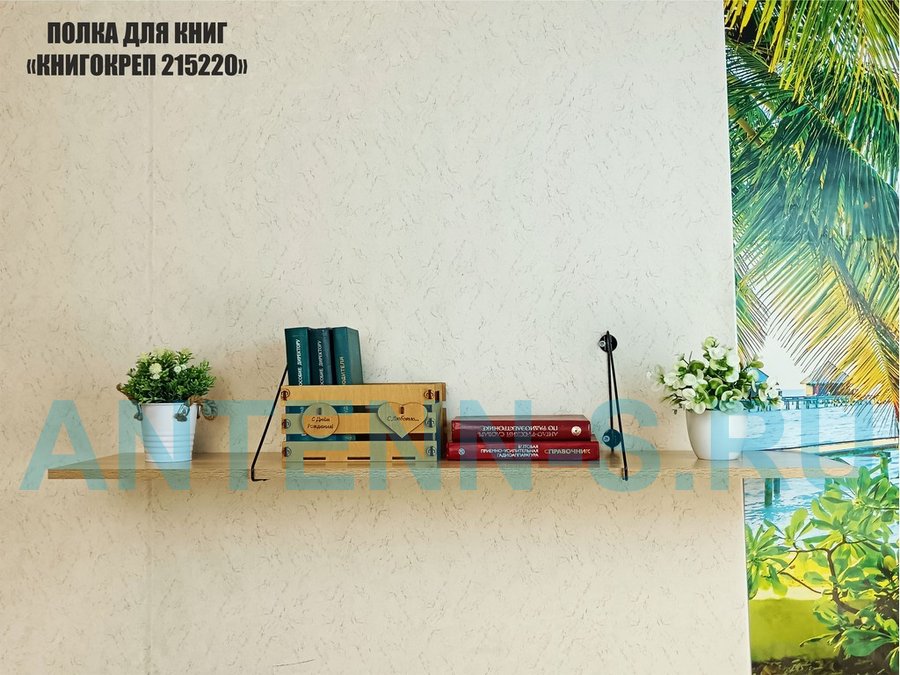 Полка для книг "КНИГОКРЕП 215220" высота 26 см размер 120х30 см черный и дуб сонома
