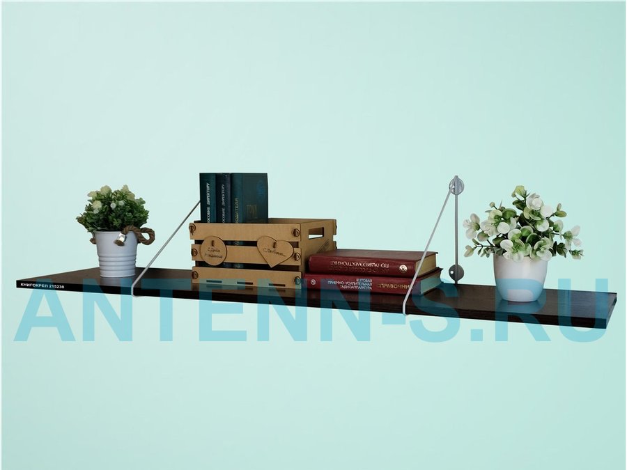 Полка для книг "КНИГОКРЕП 215230" высота 26 см размер 120х30 см серый и венге