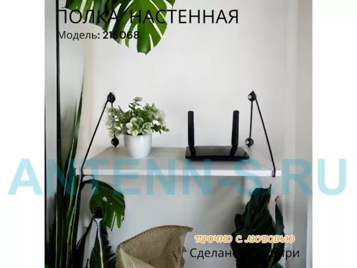 - Полка надежно крепится к стене при помощи анкеров или шурупов с дюбелями, на ней можно разместить роутер и многое другое
