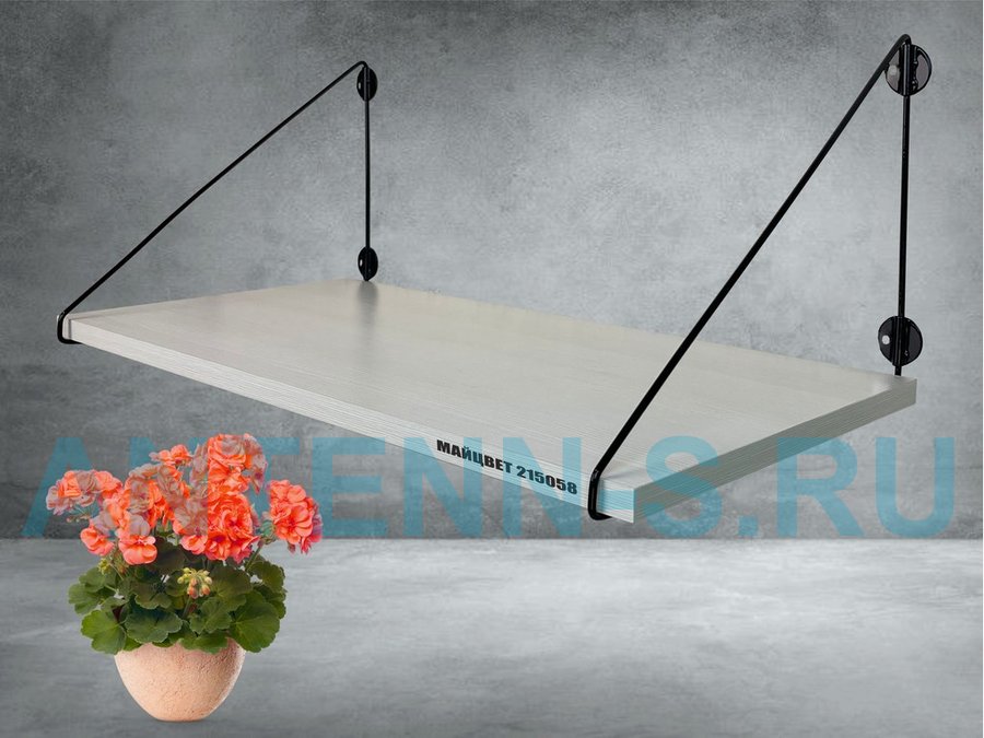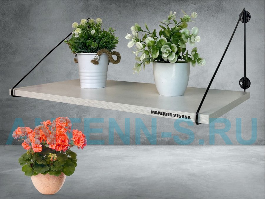 Полка выдержит тяжелые цветочные горшки с растениями, фоторамки, книги, сувениры и много другое.