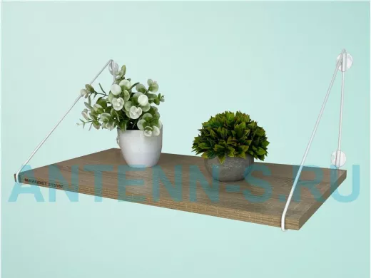 Полка выдержит тяжелые цветочные горшки с растениями, фоторамки, книги, сувениры и много другое.