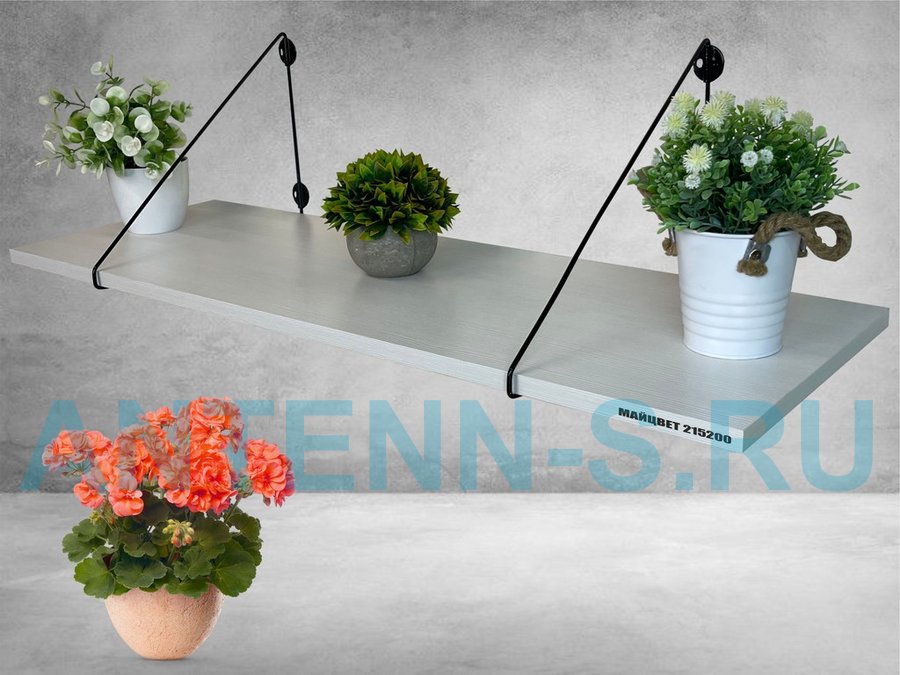 Полка для цветов "МАЙЦВЕТ 215200" высота 26 см размер 90х30 см черный и сосна выбеленная