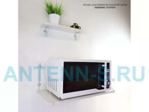 - Полка надежно крепится к стене при помощи анкеров или шурупов с дюбелями, на ней можно разместить микроволновую печь, кухонную технику, посуду, специи и многое другое
