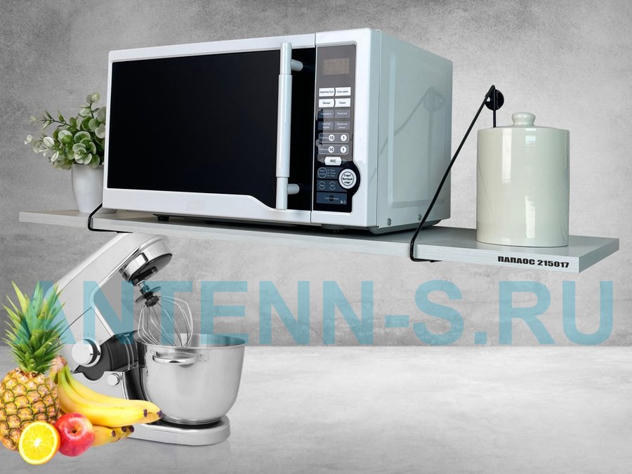 Полка для микроволновки размер 90х30 см "ПАПАОС 215017" высота 26 см черный и сосна выбеленная