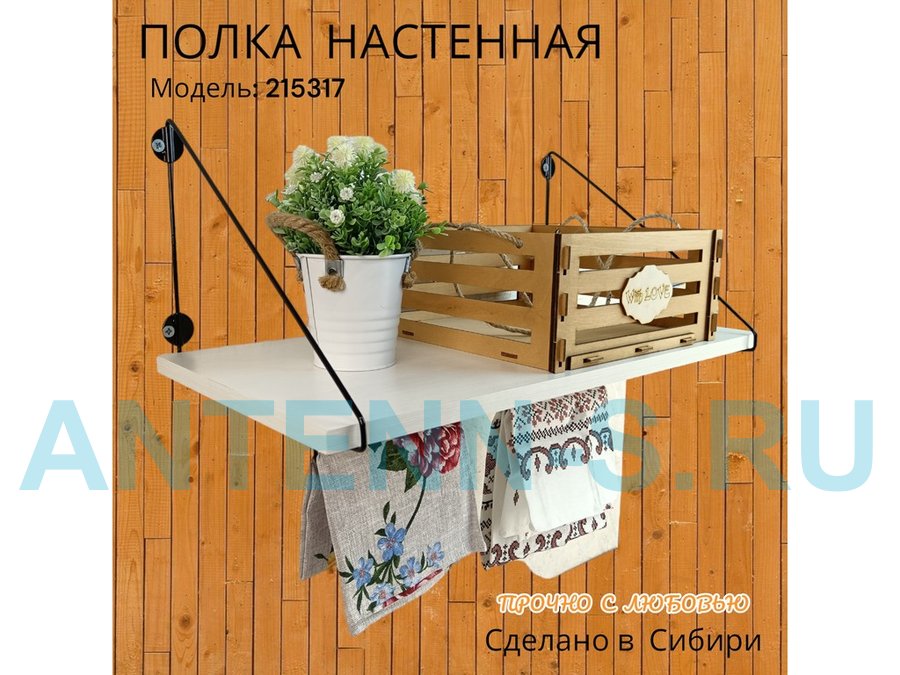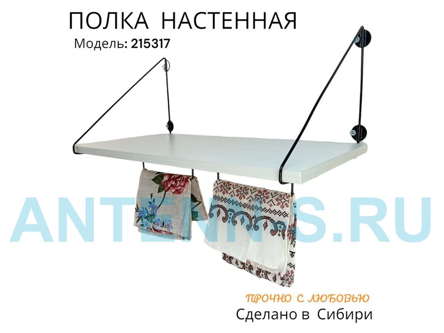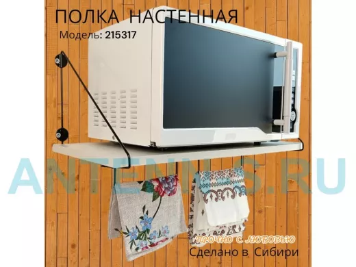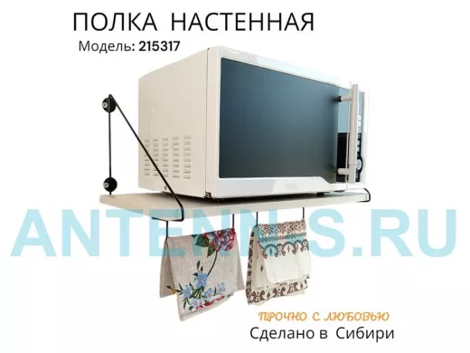 Полка для микроволновки размер 60х30 см "ПАПАОС 215317" черный и сосна выбеленная с держателями