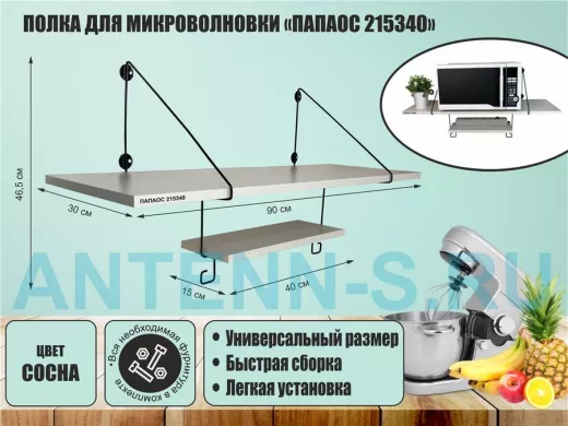 Полка для микроволновки размер 90х30 см "ПАПАОС 215340" высота 46,5 см черный и сосна с полкой