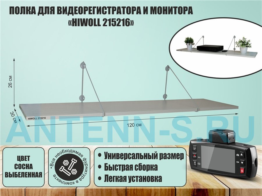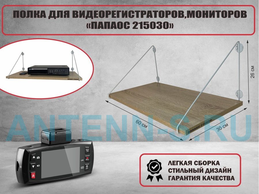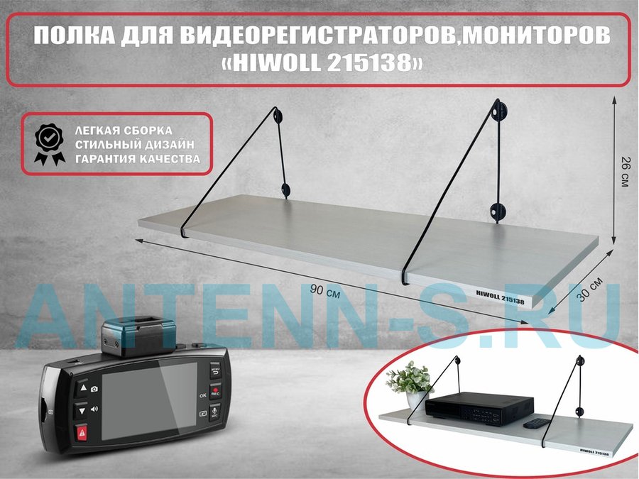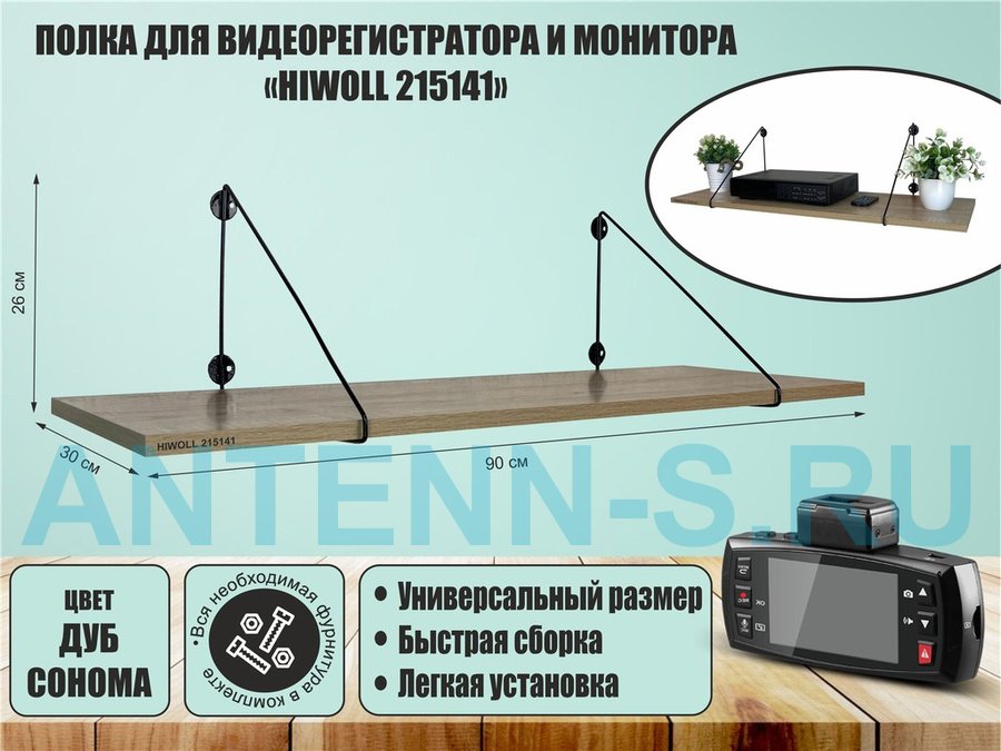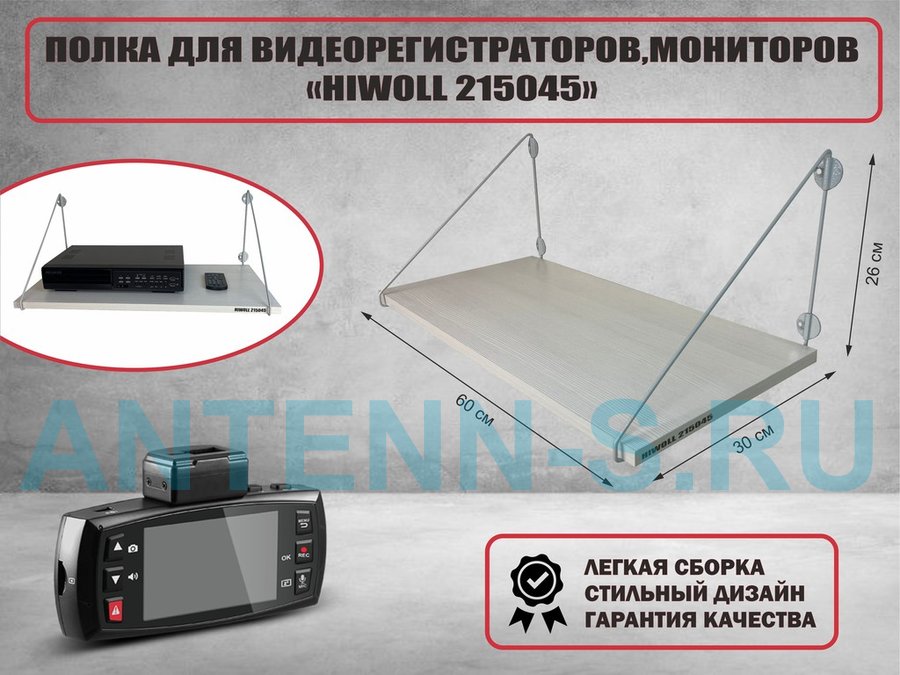 Полка для видеорегистратора и монитора "HIWOLL 215030" высота 26 см размер 60х30 см серый дуб сонома