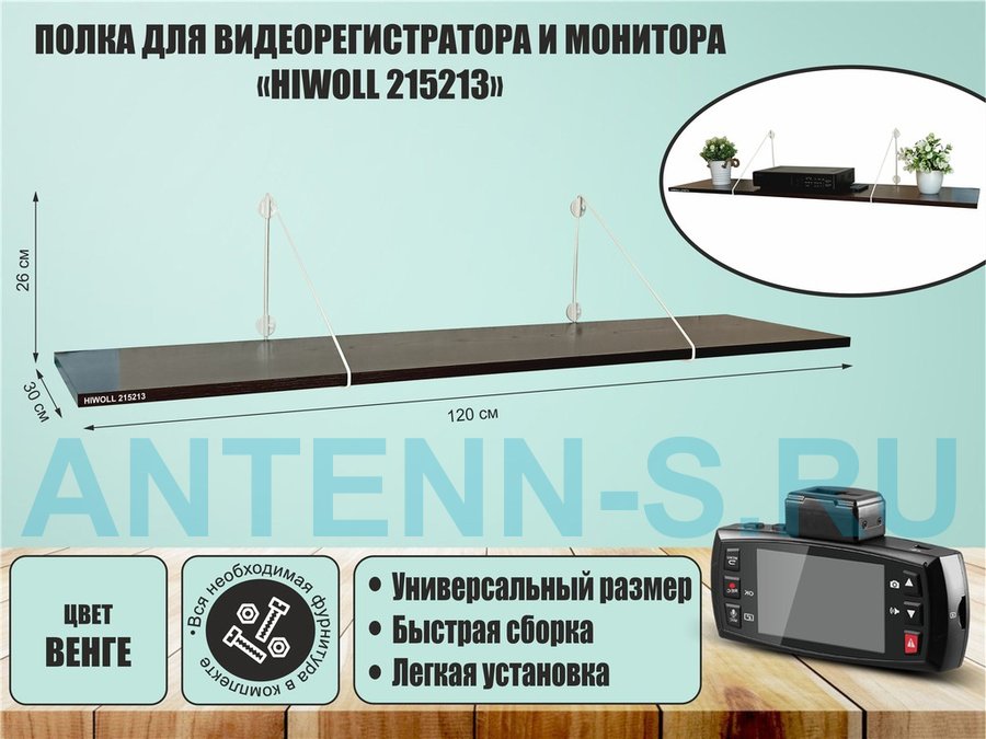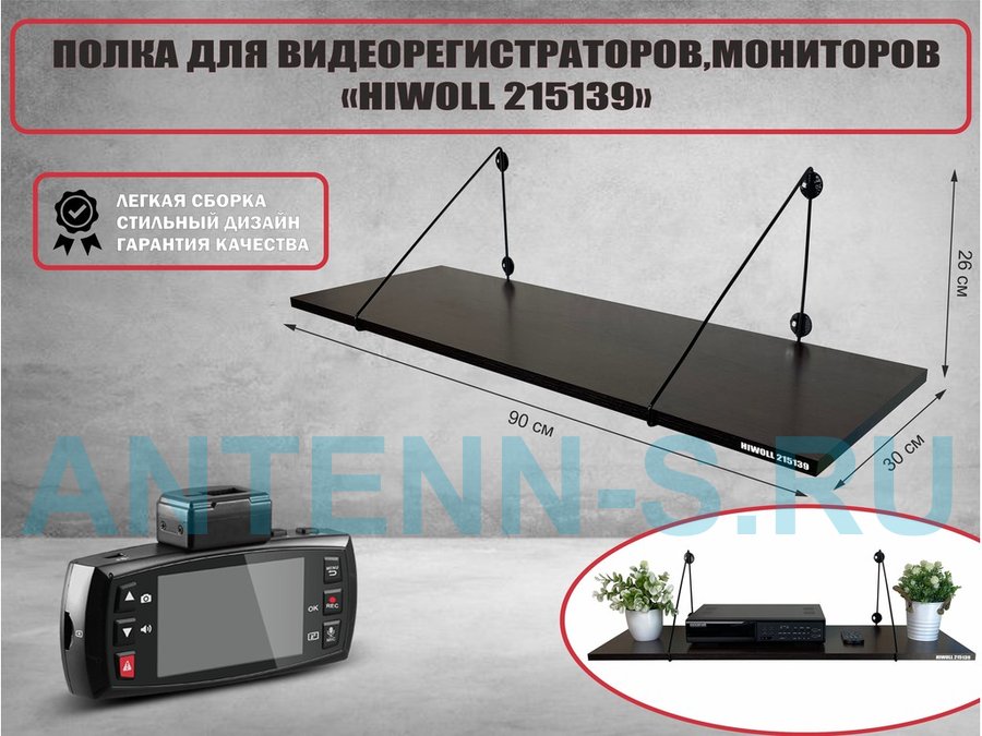 . Полки стильные глубина 30 см для видеорегистратора и монитора "HIWOLL" треугольный каркас