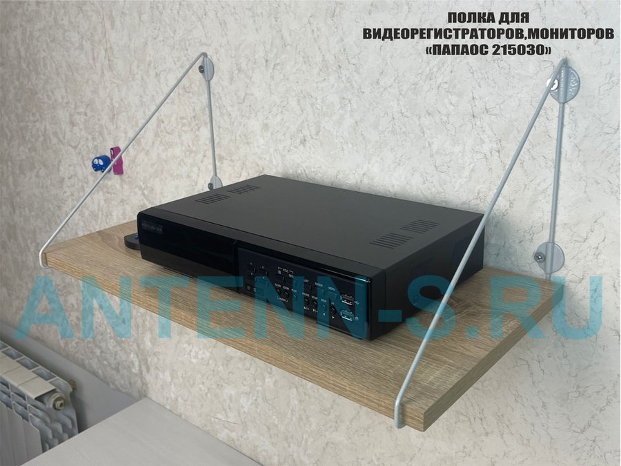 Полка надежно крепится к стене при помощи анкеров или шурупов с дюбелями, на ней можно разместить видеорегистратор, монитор и многое другое