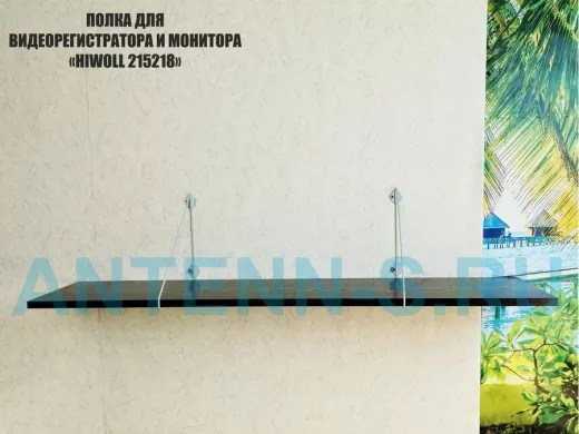 - Полка надежно крепится к стене при помощи анкеров или шурупов с дюбелями, на ней можно разместить видеорегистратор, монирот