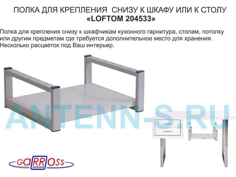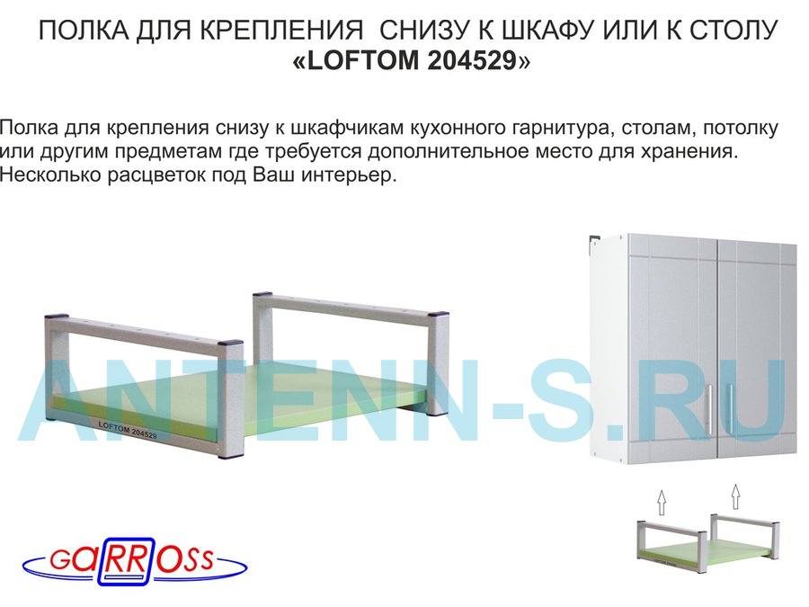 В корзину Купить в 1 клик Полка под шкаф, 15см, серая "LOFTOM 204529" крепление под стол, размер полки 30х40см, салатовый