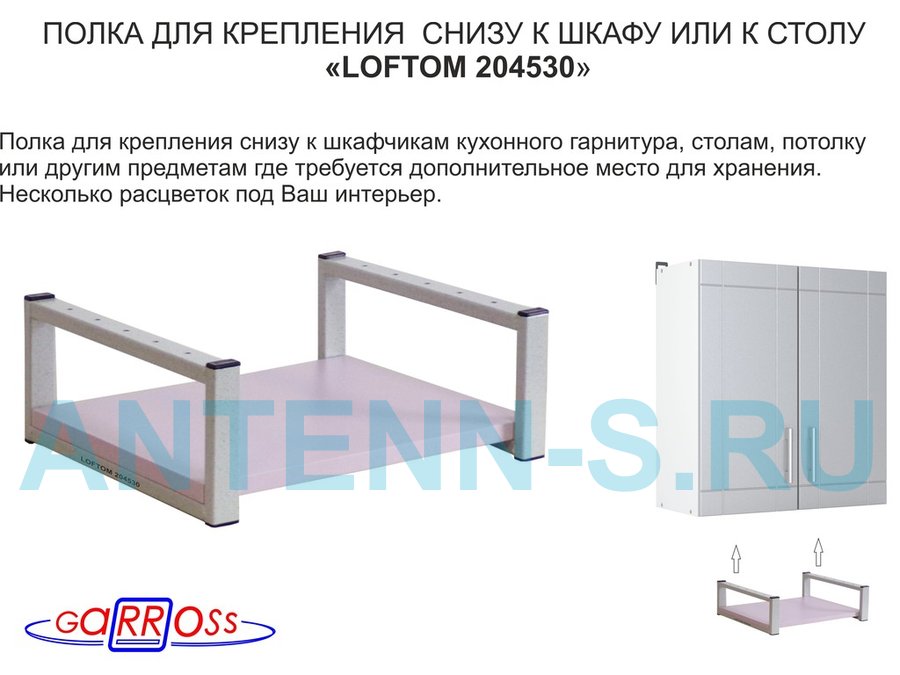 В корзину Купить в 1 клик Полка под шкаф, 15см, серая "LOFTOM 204530" крепление под стол, размер полки 30х40см, лаванда