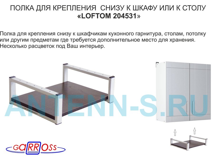 В корзину Купить в 1 клик Полка под шкаф, 15см, серая "LOFTOM 204531" крепление под стол, размер полки 30х40см, венге