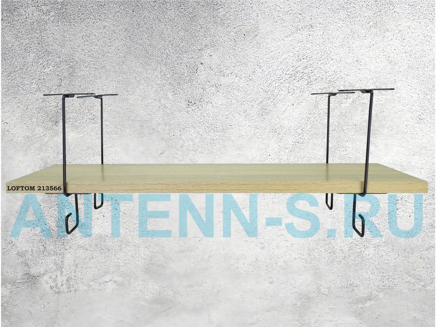 Полка подвесная под шкаф или стол черная, 60х15 см, дуб "LOFTOM 213566" высота 15см, с крючками