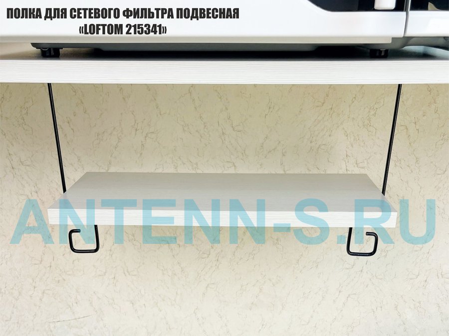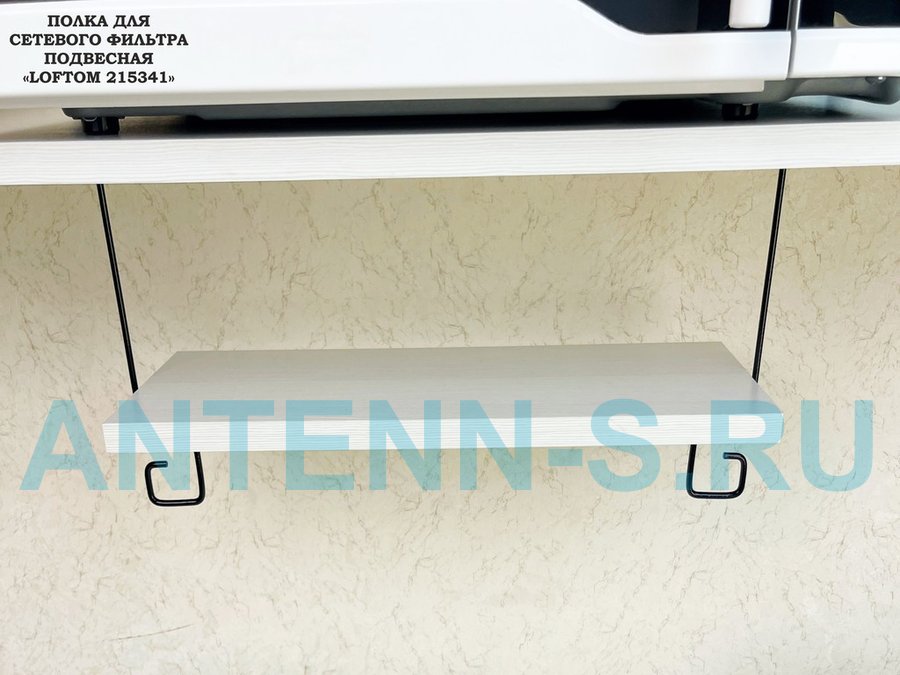 Полка для сетевого фильтра подвесная "LOFTOM 215341" 15х40см сосна выбеленная, с креплением шнура