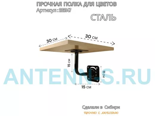 - Размер поверхности полки 30 х 30 см