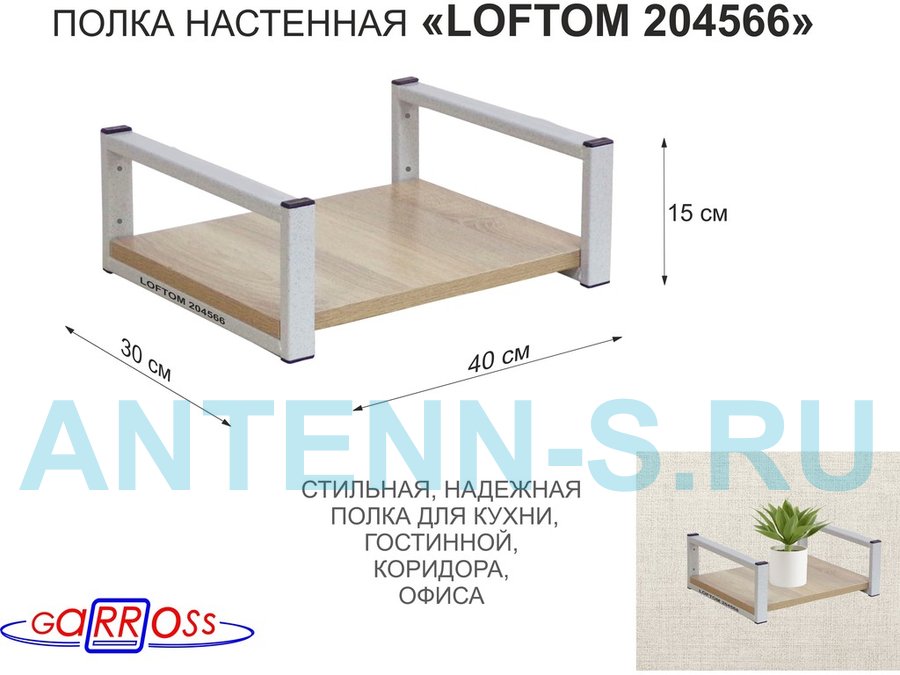 В корзину Купить в 1 клик Полка для цветов 15см "LOFTOM 204566" крепление к стене, размер 30х40см,серый/дуб сонома
