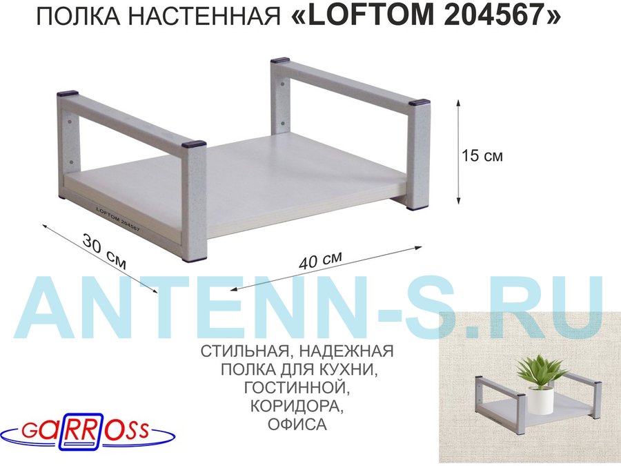 В корзину Купить в 1 клик Полка для цветов 15см "LOFTOM 204567" размер 30х40см, серый/сосна выбел.