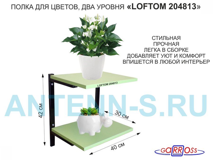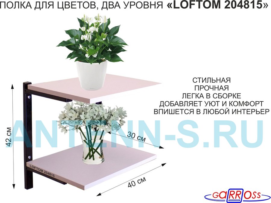 . Полки для цветов, книг, сувениров "LOFTOM" с полками 40х30см, 2 уровня
