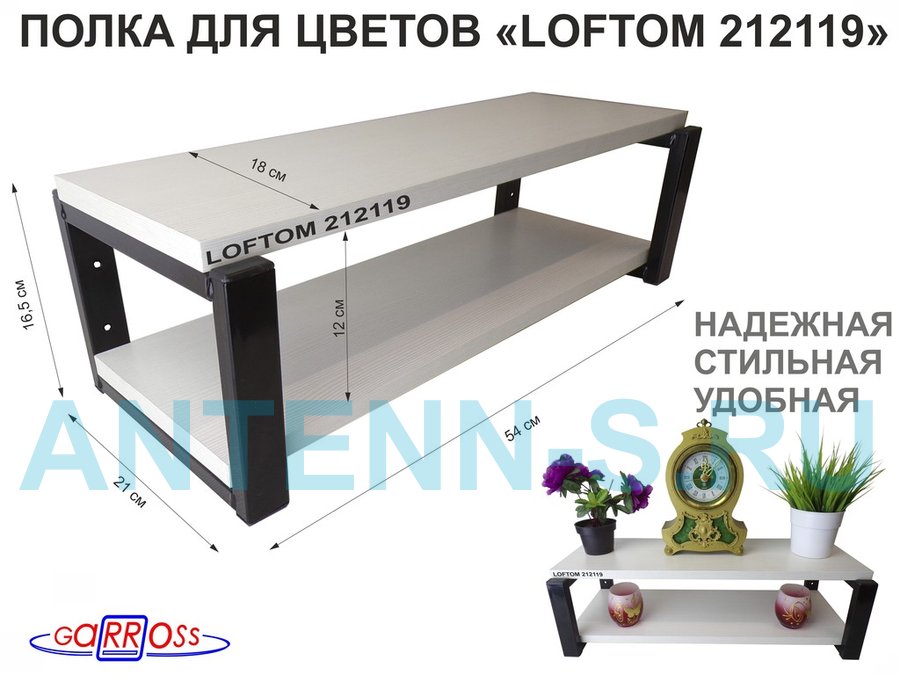. Полки для цветов "LOFTOM" высота 15 см, с 2 полками 54х17,5 см