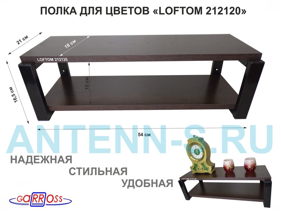 В корзину Купить в 1 клик Полка для цветов, серая "LOFTOM 212117" высота 15 см, с двумя полками 54х17,5 см, венге