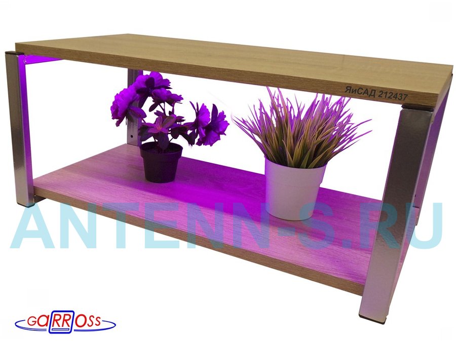 Полка для цветов и рассады с фитоподсветкой, высота 25см, серебристый "ЯиСАД 212437" 60х30, дуб