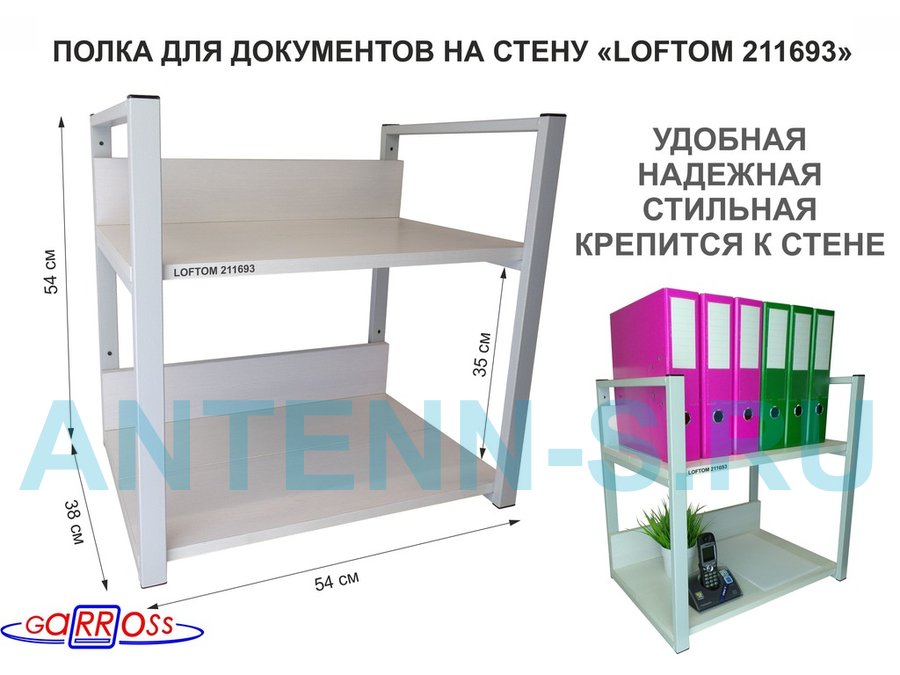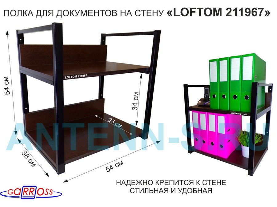 . Полки для папок-регистраторов и документов "LOFTOM" высота 54 см, полки 54х35см, 2 уровня