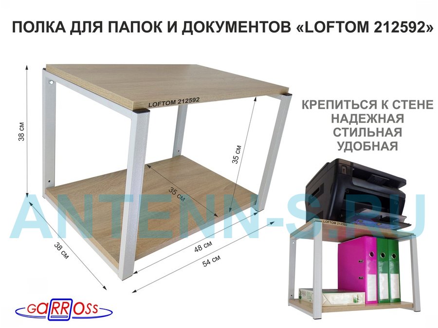 В корзину Купить в 1 клик Полка для папок и документов, высота 38см серый "LOFTOM 212594"две полки 35х54см, сосна выбеленная