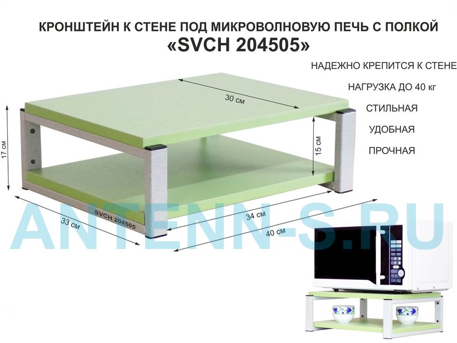 Кронштейн для микроволновки, 17см серый "SVCH 204505" под микроволновую печь, полка 30х40, салатовый