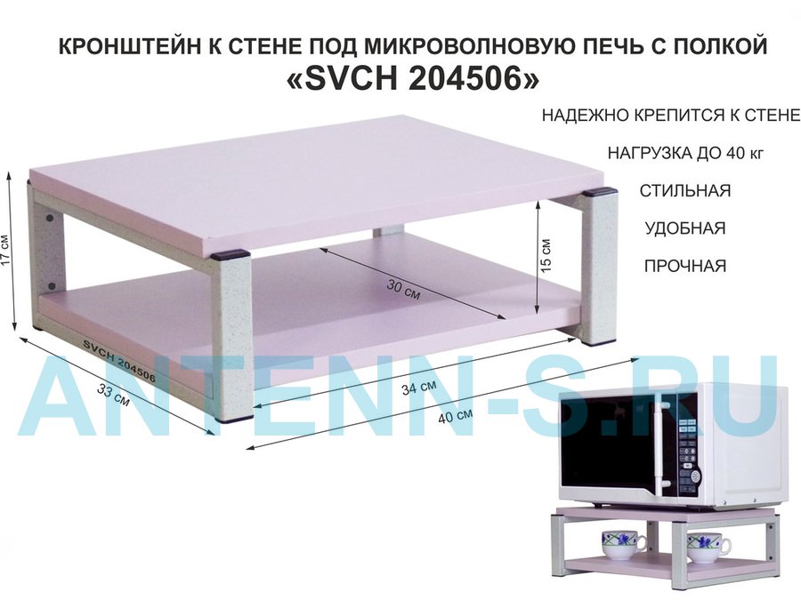 Полки для микроволновок "SVCH" кронштейны для СВЧ печей, высота 17см, 40х30см, 2 уровня