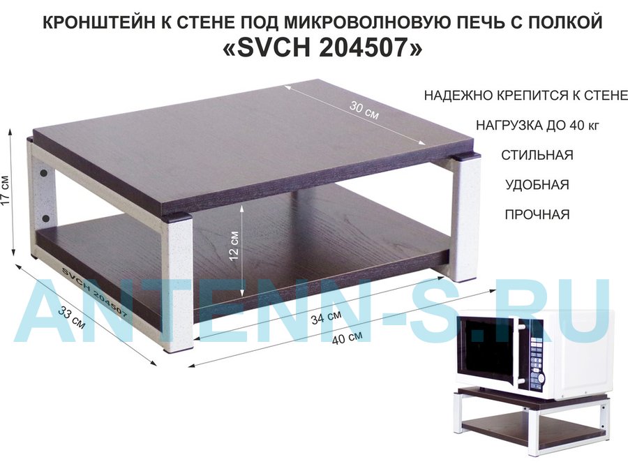 Кронштейн для микроволновки, 17см чёрный "SVCH 204821" под микроволновую печь, полка, 30х40см, венге