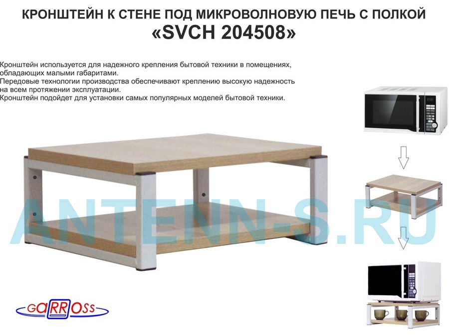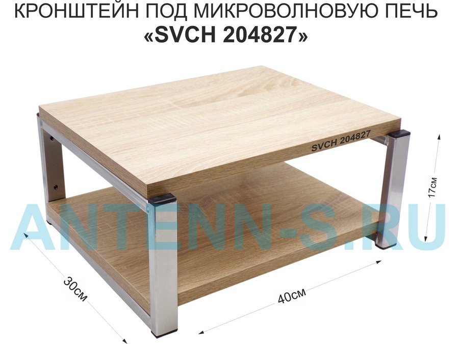 Кронштейн для микроволновки, 17см под хром "SVCH 204828" под микроволновую печь, полка, 30х40, сосна