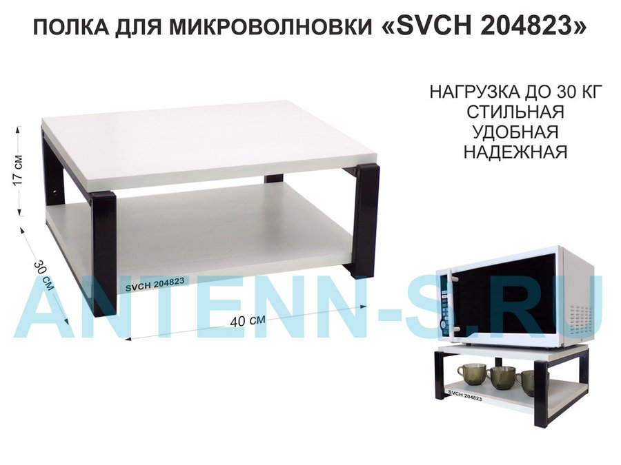 Кронштейн для микроволновки, 17см чёрный "SVCH 204819" под микроволновую печь, полка,30х40см,салатов