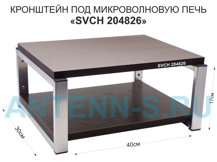 Кронштейн для микроволновки, 17см под хром "SVCH 204826" под микроволновую печь, полка, 30х40, венге