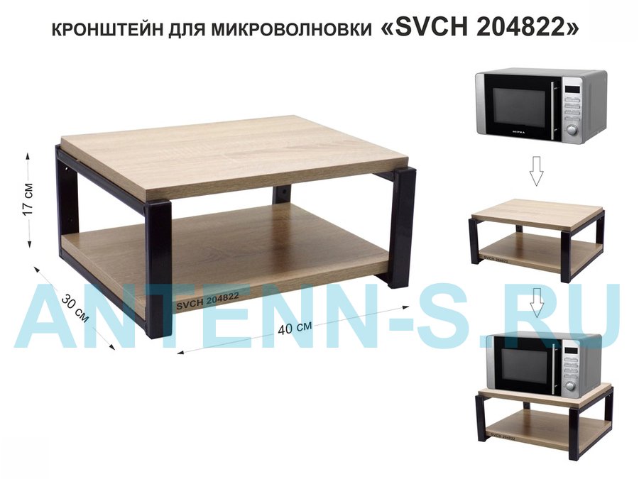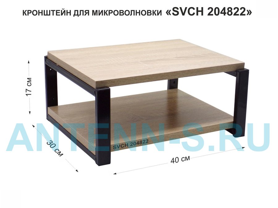 Кронштейн для микроволновки, 17см чёрный "SVCH 204822" под микроволновую печь, полка, 30х40см, дуб