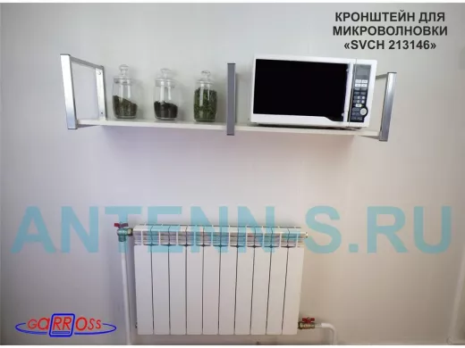 Кронштейн для микроволновки, 25см сереб, 1 полка 30х120см "SVCH 213146" под микроволновую печь,сосна